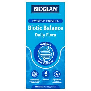 Bioglan Biotic Balance Daily Flora is formulated with 10 billion live cultures, from 6 strains, to keep your gut smiling. Give your tummy the love it deserves with Bioglan Biotic Balance.
